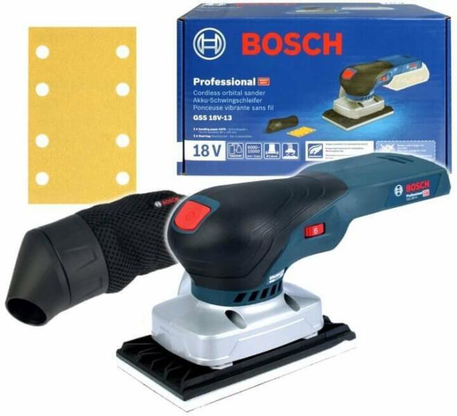 Bosch GSS 18V-13 akkus rezgőcsiszoló 18 V | 80 x 130 mm | Szénkefés | Akku és töltő nélkül | Kartondobozban (06019L0100)