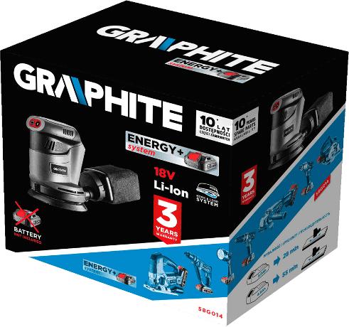 Graphite Excenteres köszörű 58G014, Accu, 18V, Li-Ion, Energy , grafit